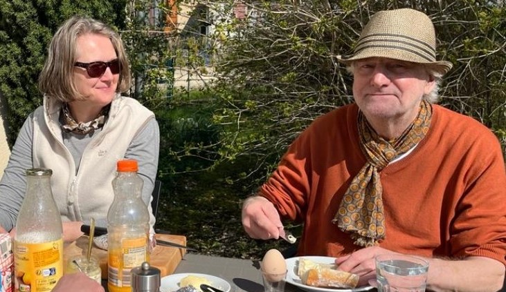 „Paradis au Coin“ ist ein großzügiges Anwesen in Ortrandlage mit einer weitläufigen Obstbaum-Wiese im Hang. Es begrüßen euch auf „Paradis au Coin“ Gisela und Uli, hier beim Frühstück auf unserer Terrasse.